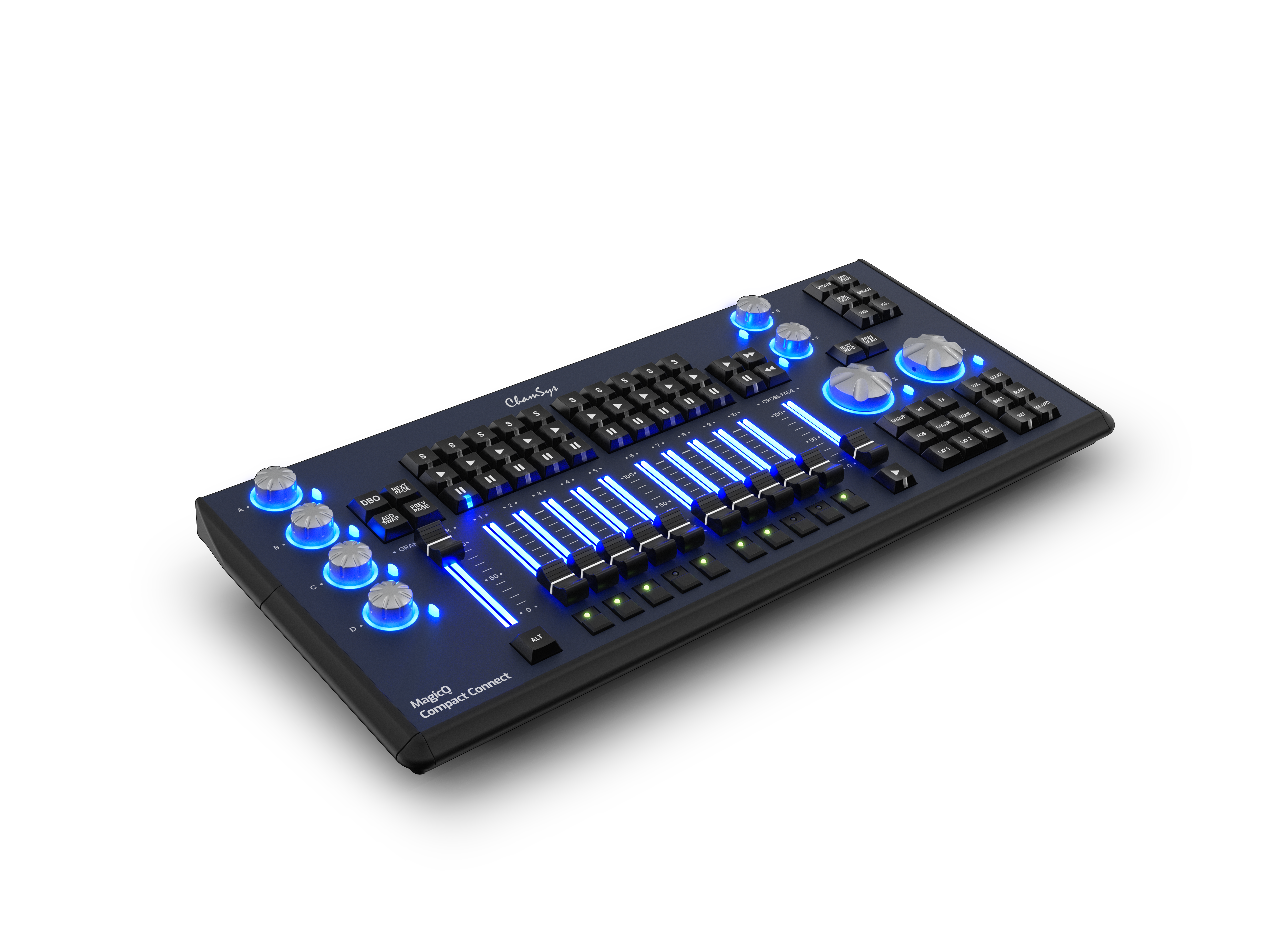 The MagicQ Compact Connect is a lightweight USB control surface that connects to your PC or Mac to control lighting, media, and LEDs.